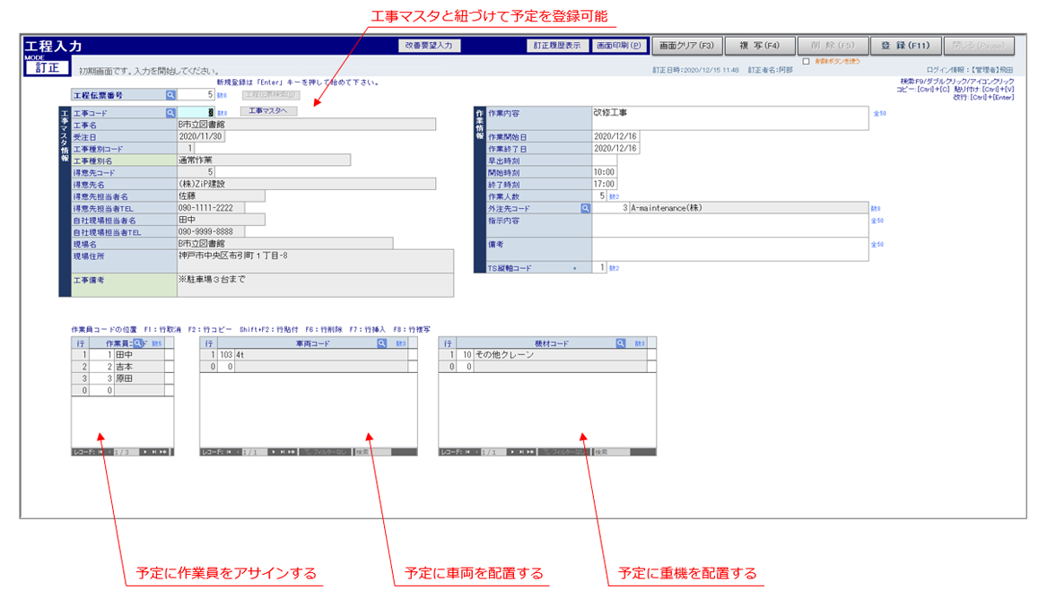 ●空白枠をクリックし予定を入力します。入力後は作業指示書を発行できます(例)